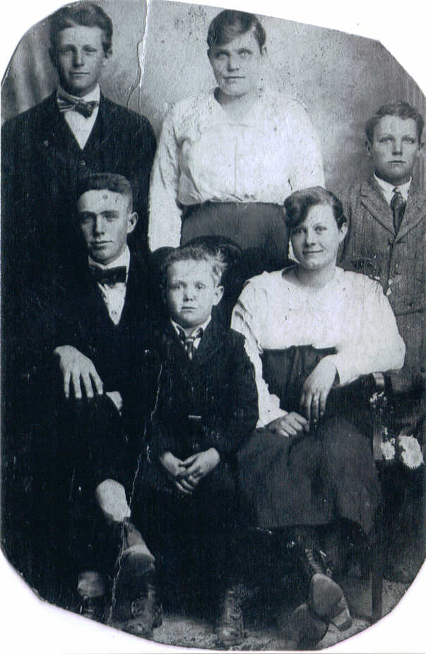 This is the family of John Phillip Nations who is buried at the McCully Cememtery in Kennett I always Called The youner boy is Earnest he is buried in the McCully Cemetery next to his father Jahn Phillip his mothe is buried therea s well her name is Alice J Nations and is John's second wife the other children are John Phillip Nation's Children with Sarah? My gg grandfather is seated the to the left his name is Verni Lonzo Nations who married Rachel Jane Berry and is burried in Oak Ridge Cemetery in Kennett. Rachel Jane Berry is the fourth cousin of Abraham Lincoln thru the George Berry and Martha Patsy Lincoln line who moved from Stokes North Carolina to Bollinger County Missouri. Earnest is the shorter boy in the back on the right looks like he is seated. I have to find the other names Sherree |
