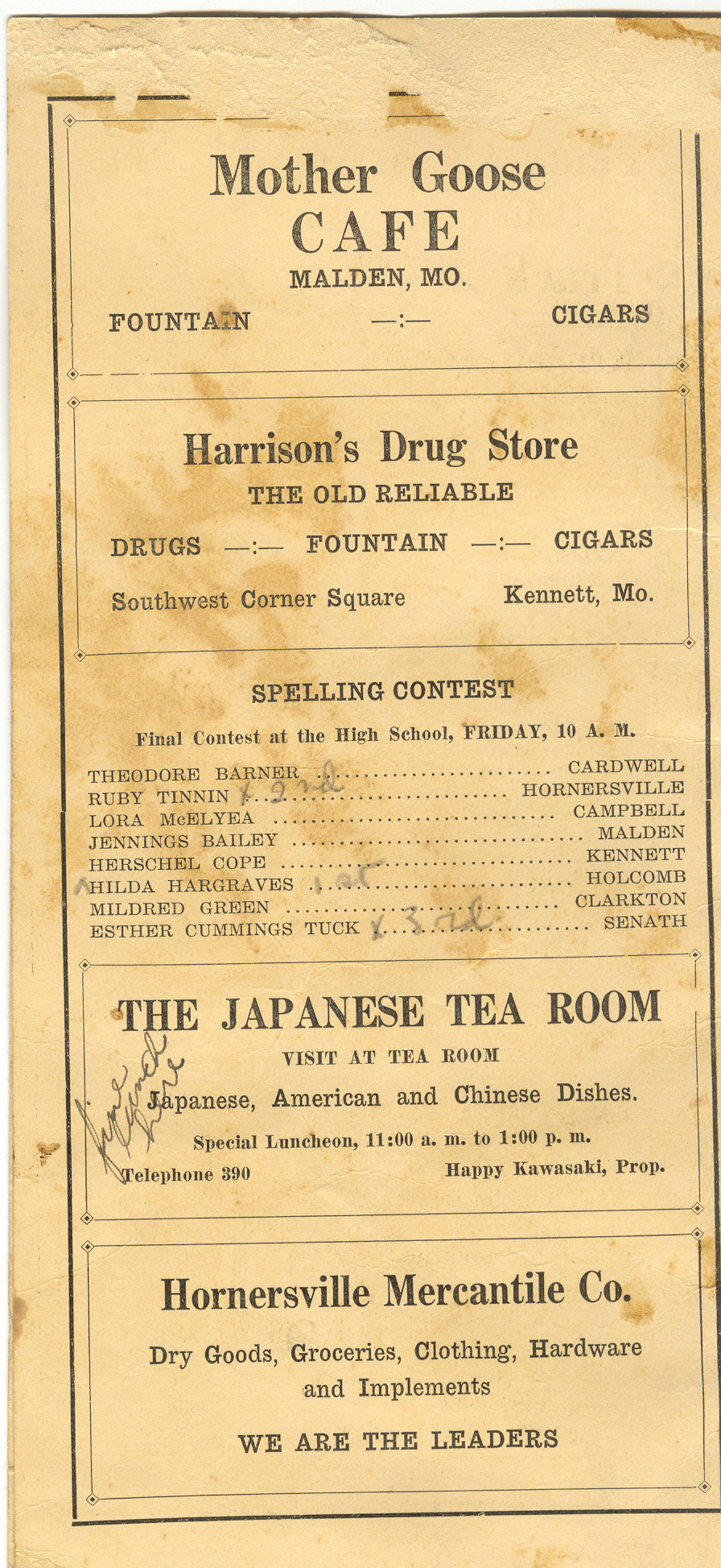 Official Program and Score Card Dunklin County "Back"